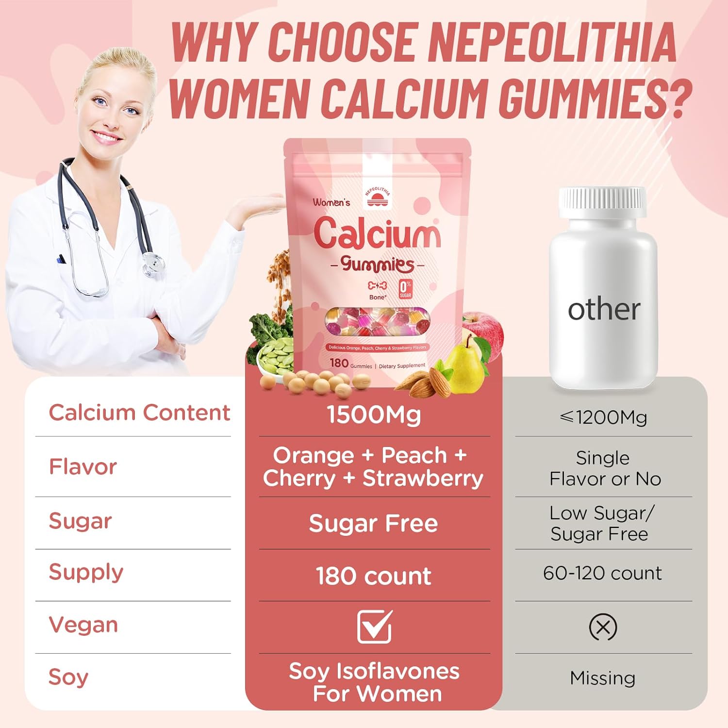 8 reviews for Calcium Gummies for Women – 1500mg Calcium Citrate with Vitamin D3, K2, Magnesium, Zinc, Boron & Soy Isoflavones – Calcium Supplement, Vegan, Zero Sugar, Mixed Fruit Flavors, 180 Count